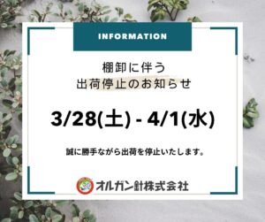 【お知らせ】棚卸に伴う出荷停止につきまして
